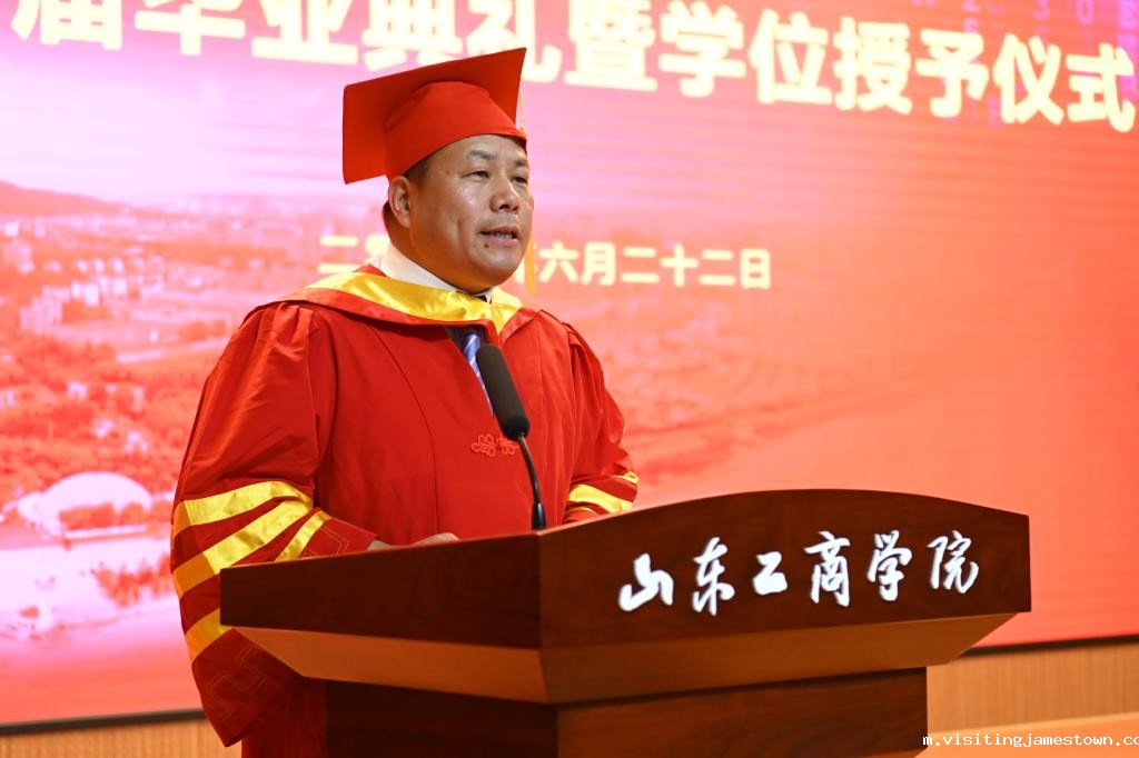 典礼在庄严的国歌声中拉开帷幕。李希亮代表学校向圆满完成学业的同学们致以热烈祝贺。他高度赞扬了同学们勤学不辍、追求卓越的学习精神,希望同学们今后能够与学校一起追梦前行,不断提升,成就更好的自己。他向即将踏上新征程的毕业生们提出殷切希望:一是以家国情怀锚定人生航向,做志存高远的追梦者,以实现中华民族伟大复兴为己任;二是希望同学们以知行合一锻造核心能力,做终身学习的践行者,让每一次挑战突破都化作能力升级的阶梯;三是希望同学们以赤子之心反哺母校发展,做校荣我荣的传承者,为母校“建设有特色开放式高水平财经类大学”的目标贡献力量。
